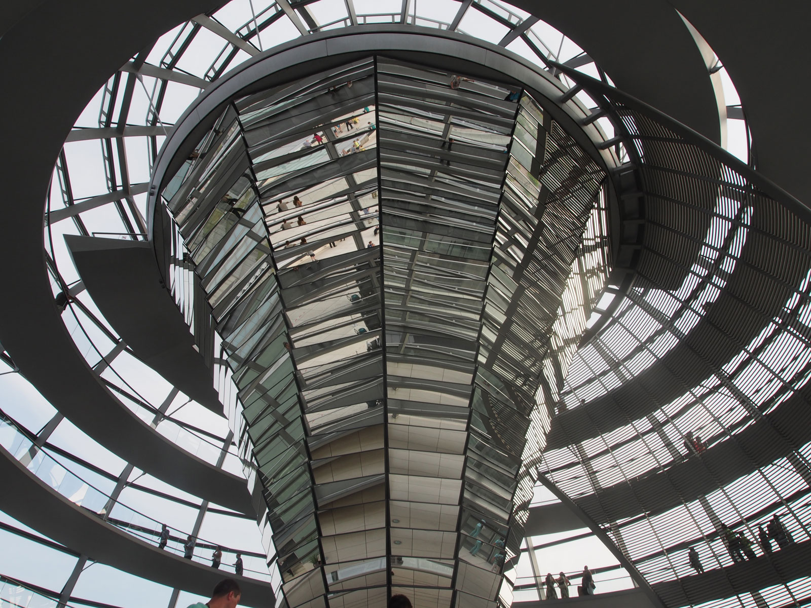 Sesli rehberlerde Türkçe seçeneği mevcut. Sesli rehber Alman Parlamento Binasında biz adım attıkça Bundestag’ı tanıtıyor ve o andaki bulunduğumuz yerden görünen Berlin hakkında detaylı bilgi veriyor. Kubbenin merkezinde konumlandırılan açılı aynalar ile gün ışığı altta bulunan parlamento ana salonuna yansıtılıyor böylece parlamenterlerin doğal ışık altında çalışmaları sağlanıyormuş. Ana salondaki çalışmalar varsa buradan görmeniz mümkünmüş.