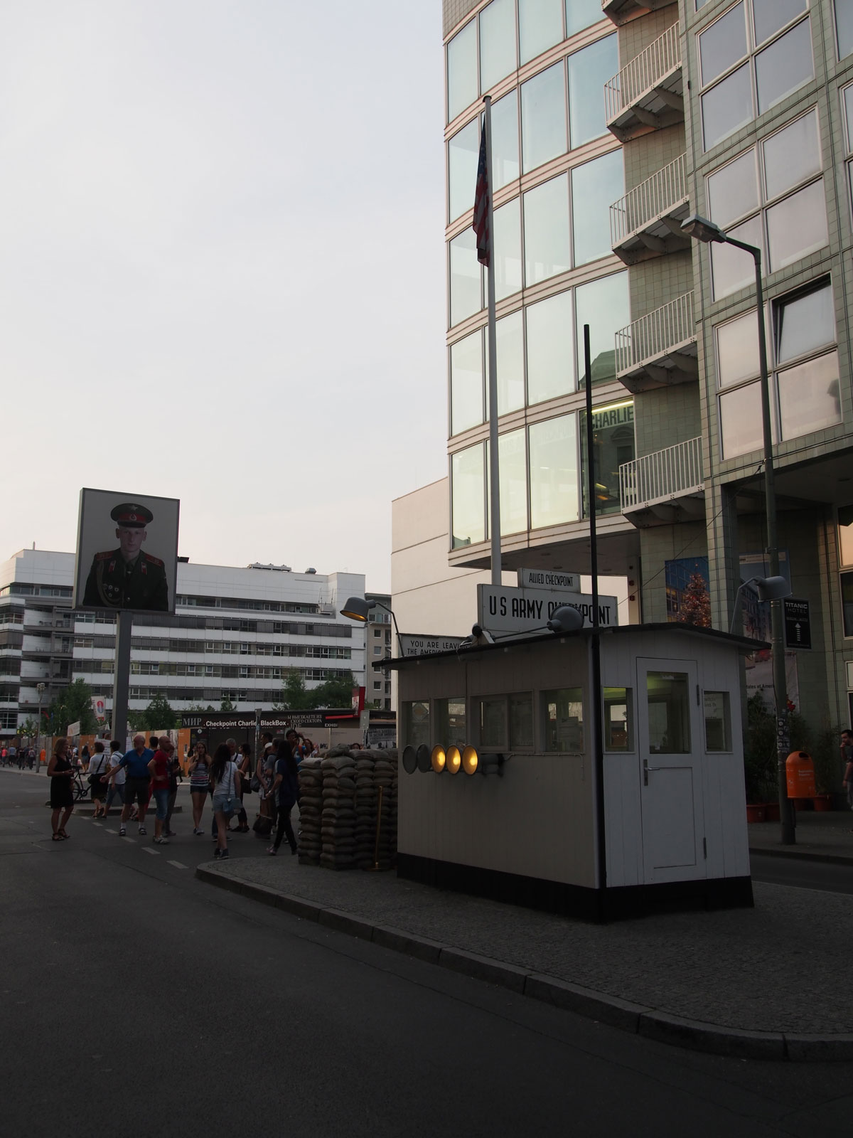 Bu akşam Berlin Gecesini yaşayacağımız akşamlardan. O yüzden buralarda oyalanacağız ama hava tam kararmadan soğuk savaş döneminde Berlin Duvarı’ndaki en bilindik geçiş noktası olan Charlie Kontrol Noktasını görmek için Berlin’in en bilinen caddelerinden Friedrichstraße’ye gidiyoruz. Checkpoint Charlie sadece müttefik askerleri, büyükelçiler, bu kişilerin aileleri, yabancılar, Federal Almanya’nın Demokratik Almanya’daki temsilcileri ve çalışanları ve Demokratik Alman üst düzey yöneticileri yani daha eşit insanlar! tarafından kullanılıyormuş.