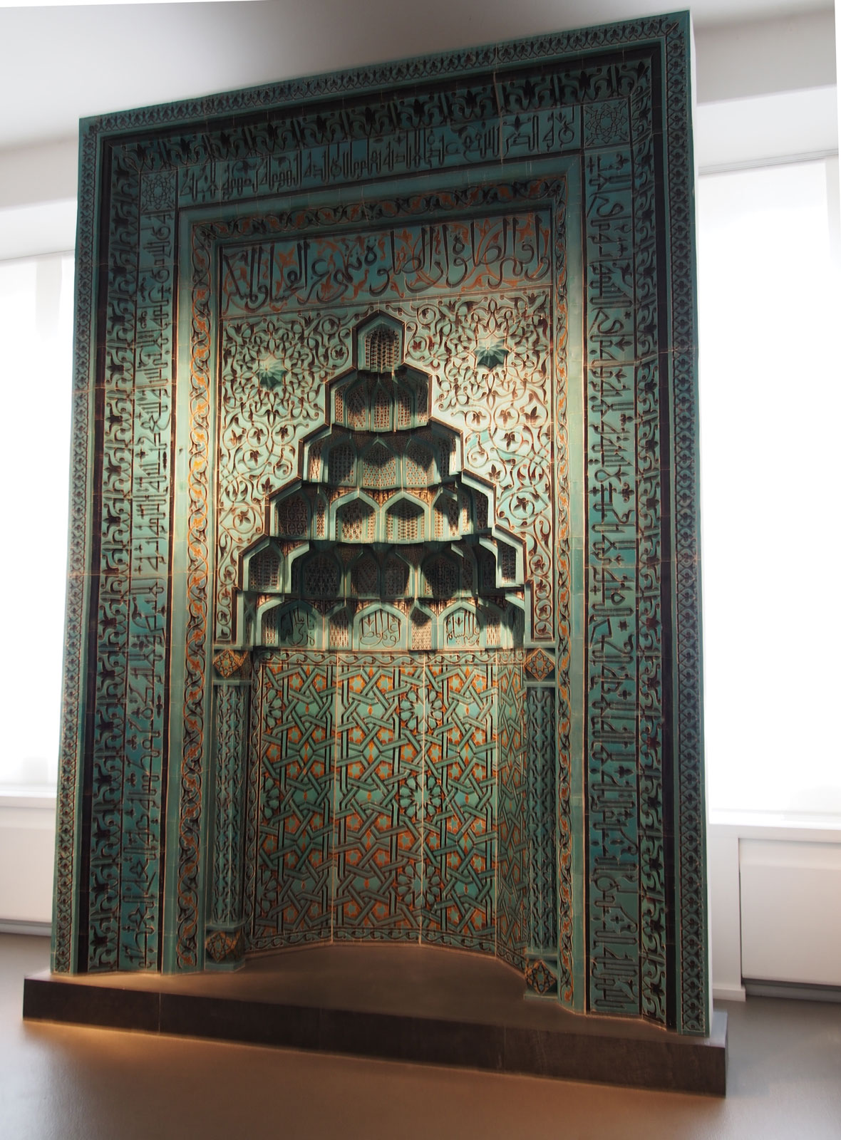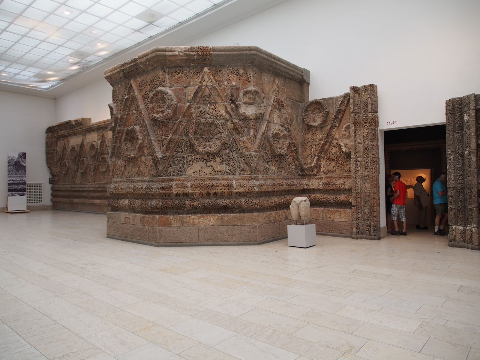 Merdivenler ile yukarıya çıktığımızda Berlin Müzeleri-Pergamon İslam Sanatı Müzesinde de yine çok güzel eserleri görme fırsatını yakalıyoruz. Bunların arasında yer alan Ürdün’ün başkenti Amman yakınlarında bulunan 8. yüzyılın ortalarına doğru yapıldığı kabul edilen Emevi Sarayı, Mşatta’nın kaleyi andıran kalın duvarlarının çok ince işçilik gerektiren taş süslemeleri bizleri adeta büyülüyor.