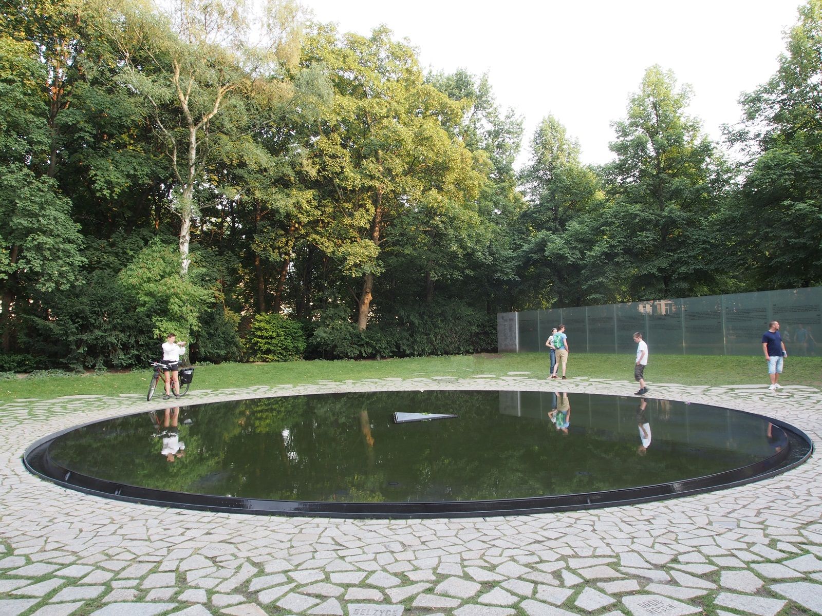 Arabayla Avrupa turu 2014‘de Bundestag’dan ayrılınca hemen yanındaki Tiergarten’e dalıyoruz. Önümüze Nazilerce katledilen Romanların anısına İsrailli Dani Karavan’ın havuz biçiminde tasarladığı Sinti Roma Anıtı çıkıyor. Berlin Gezi Rehberine göre havuzun ortasında bulunan üçgen levha, Nazilerin tutsakları ayırt etmek için kullandıkları üçgen işaretini sembolize ediyormuş. Üçgen levha üzerindeki taze çiçekler de her gün yenileniyormuş. Havuzu çevreleyen panolarda yazılar ve fotoğraflar yer almakta.