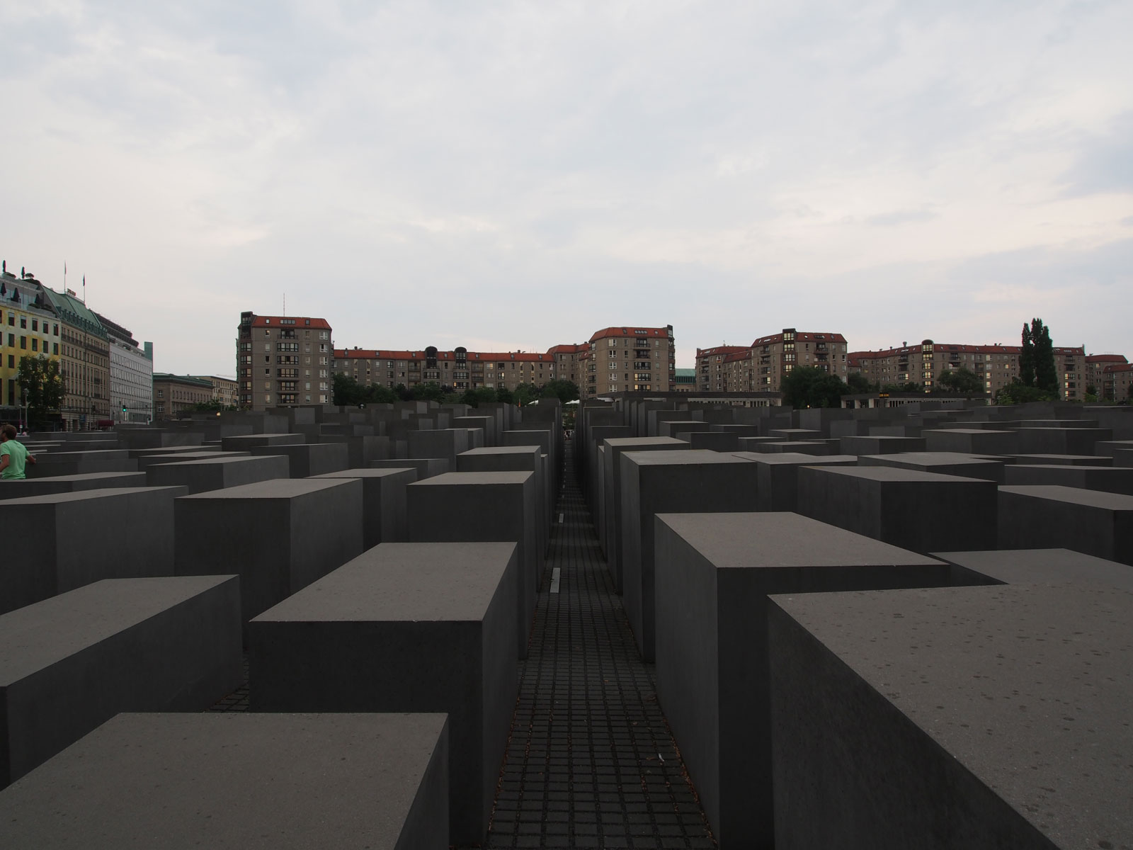 Berlin Gezi Rotası üzerindeki bu yer 19.000m² lik bir alana yayılmış 2711 adet beton bloktan oluşan bir anıt mezar. ABD kökenli bir mimar olan Peter Eisenmen’in tasarımı. Anıttaki beton blokların her biri 2,38m uzunluğunda ve 0,95m. genişliğinde ancak yükseklikleri 0,2m ile 4,8m arasında değişiyor. Buda tasarımcının vermek istediği rahatsız edici ve kafa karıştırıcı etkiyi yaratmayı başarıyor. Berlin Gezi Rehberi Beton blokların üzerilerinde yazılardan bahsediyor. Yahudi medeni kanunu, tören kuralları ve efsanelerini kapsayan dini metinlerden oluşan Talmud’un birer sayfasıymış bunlar ama biz dolaşırken farketmedik. Beton blokların arasında dolaşabiliyorsunuz ama üzerilerine çıkılmasına izin verilmiyor. Açık hava anıtının altında daimi bir serginin de yer aldığı Bilgi Merkezi varmış. Anıt mezardan ayrılarak Branderburg Kapısına geri dönüp kapıdan geçiyoruz.