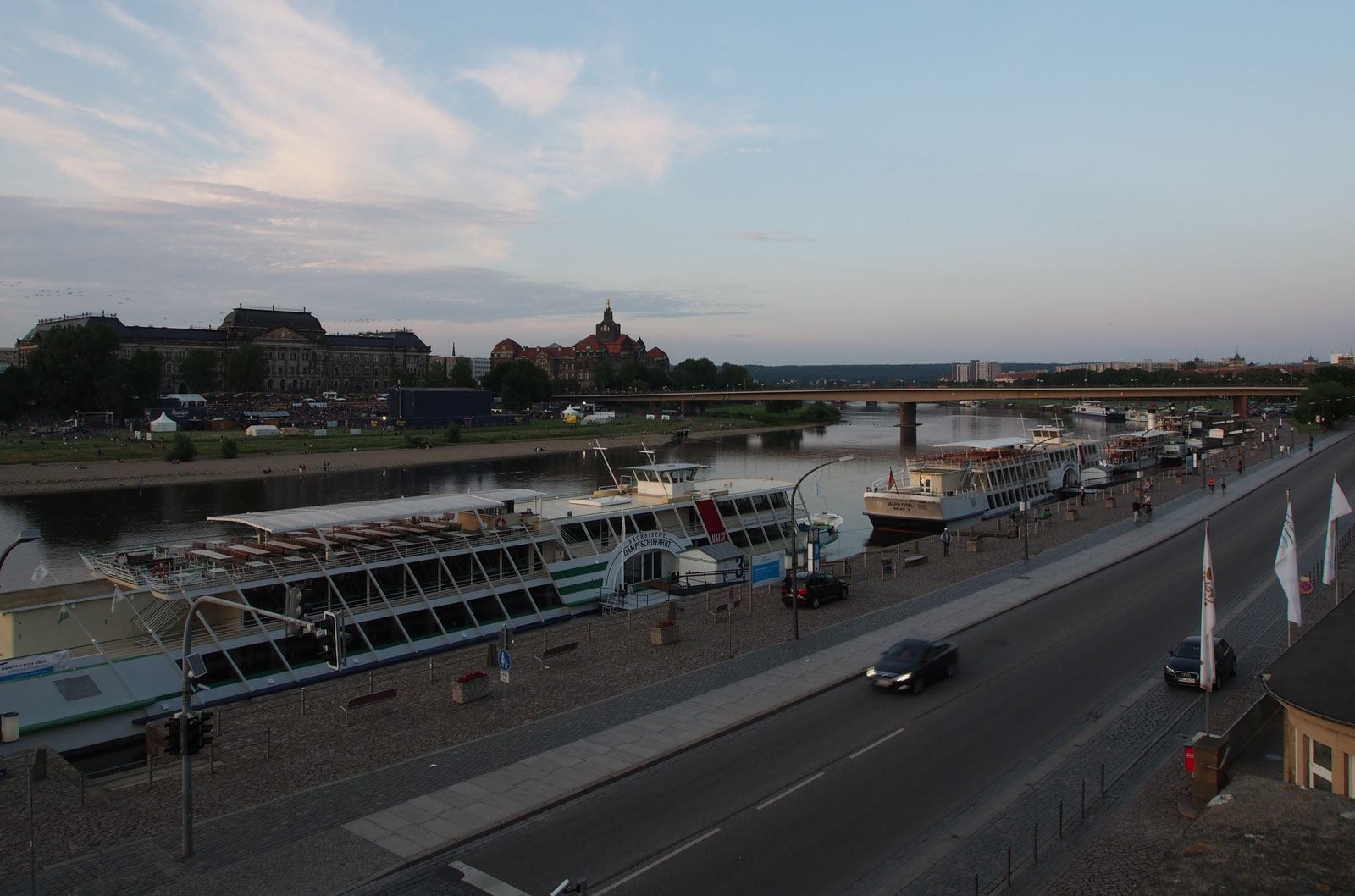 Sağ yanımızda Elbe üzerinde uzanan bir başka köprü, Carola, Royal Art Academy’nin ve Secundogenitur’un güzelliği. Elbe kıyısında şimdilik demirli birkaç saat içinde yolcularını alarak geceye akacak tekneler.
