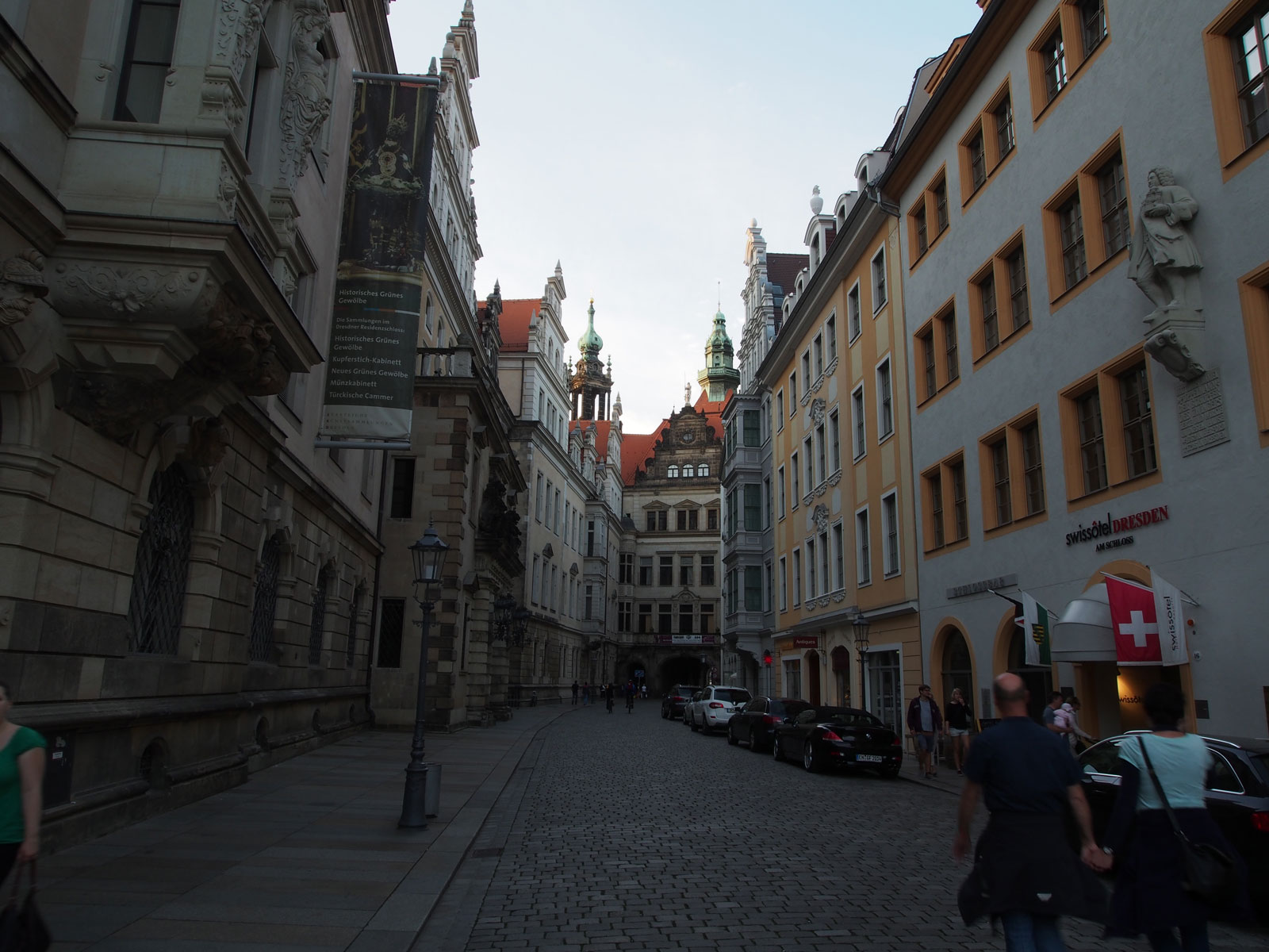 Yanında bulunduğu bina 1995’te Kempinski Otel olarak hizmet vermeye başlayan Dresden Taschenberg Sarayı. 1705- 1708 yıllarında Güçlü August metresi kontes Anna Constanze için yaptırmış. İki sarayın arasındaki Taschenberg Sokaktan yürümeye devam ediyoruz.