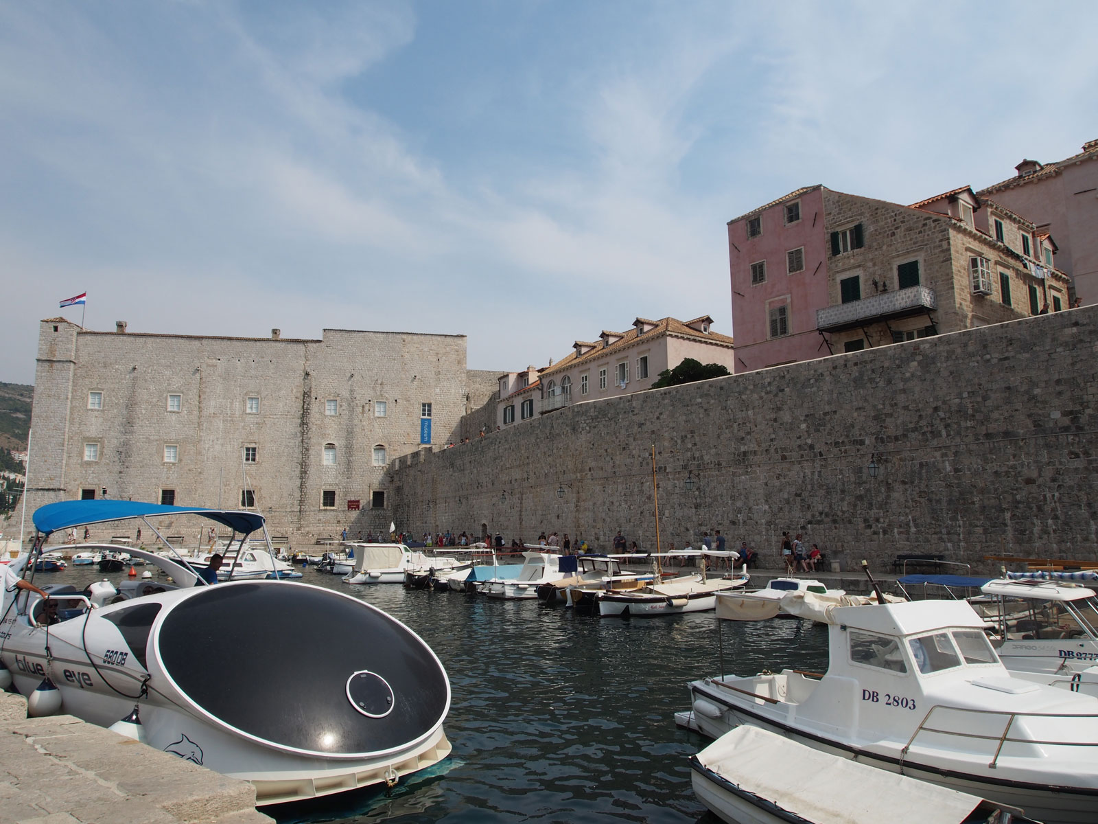 Surların dibinden yürüyerek Dubrovnik Eski Limanını (Old Port- Gradska luka) (no:14) dolaşıyoruz ve limanın hemen ucunda yer alan St. John Kalesi (St John Fort- Tvrđava sv. Ivana) (no:27) önünden denize girenleri görünce buraya mayolu gelmediğimiz için hayıflanıyoruz.