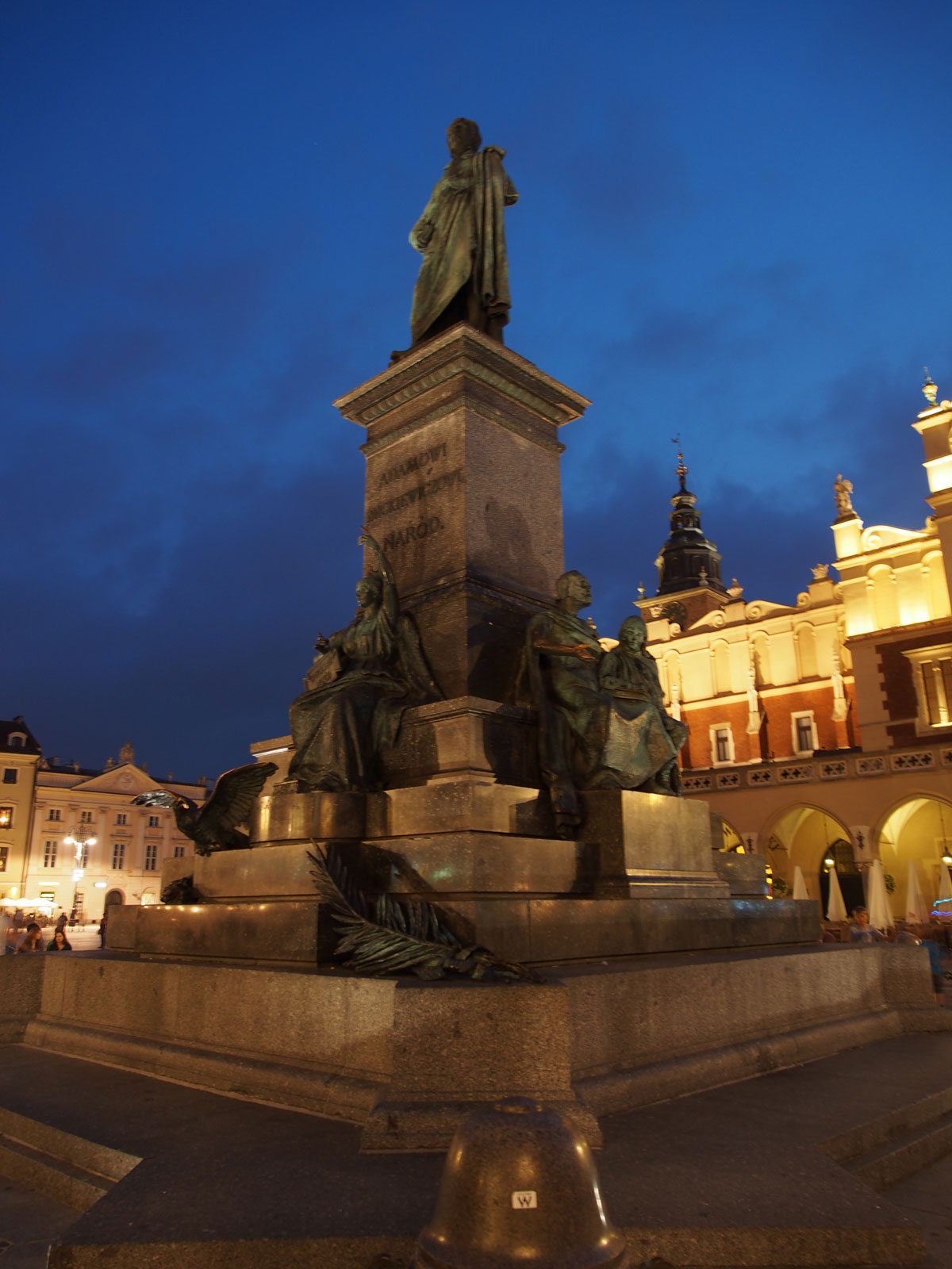 Kaide de ise “Adam Mickiewicz için, Ulus” (To Adam Mickiewicz, the Nation) yazmaktadır. Nazi işgalinde harap edilen heykelin parçaları 1946’da Hamburg’da hurdalıkta bulunup restore edilerek 1955’de yerine tekrar yerleştirilmiştir. Ölümünden 35 sene sonrasına kadar hiç Krakow’a gelmeyen Adam Mickiewicz bugün Wawel Katedralindeki ebedi istirahatgahındadır.