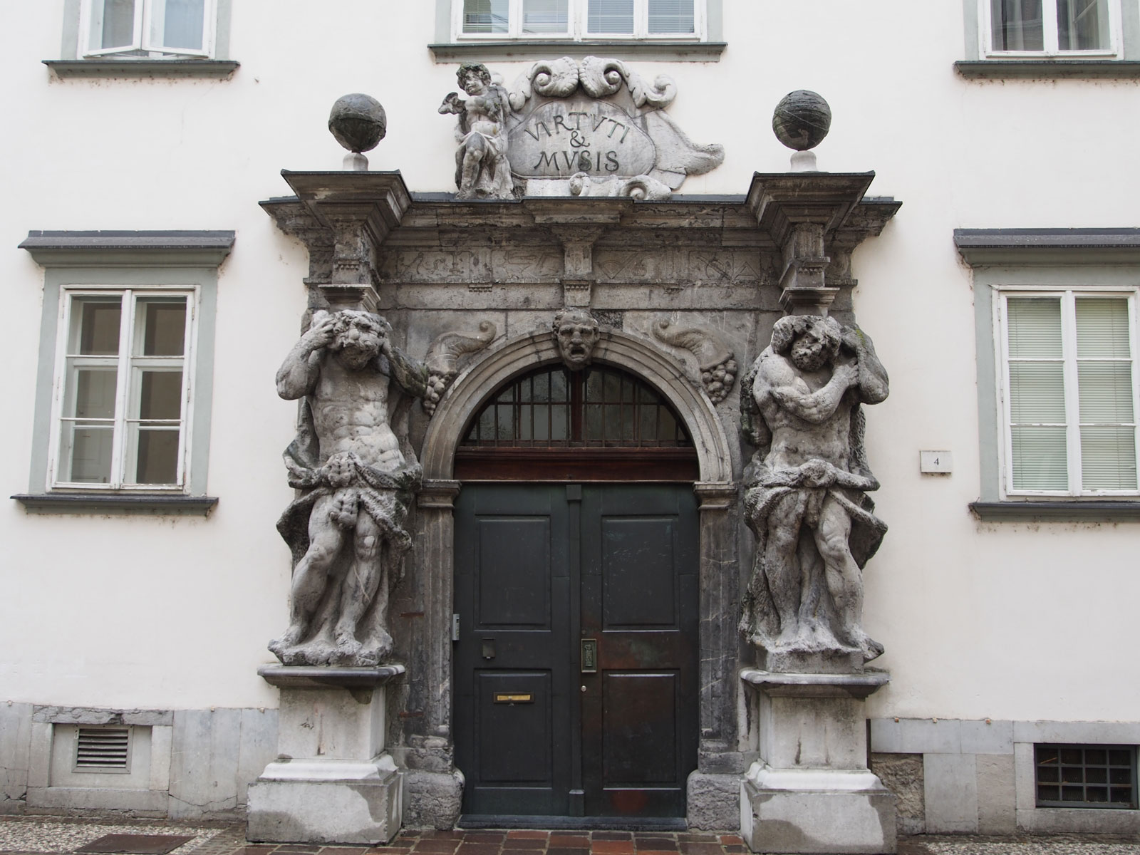 Ljubljana’lı taş ustası Luka Mislej tarafından yapılan ve iki devin Angelo Pozzo atölyesinde oyulduğu gösterişli kapısı da bir hayli ilginç.