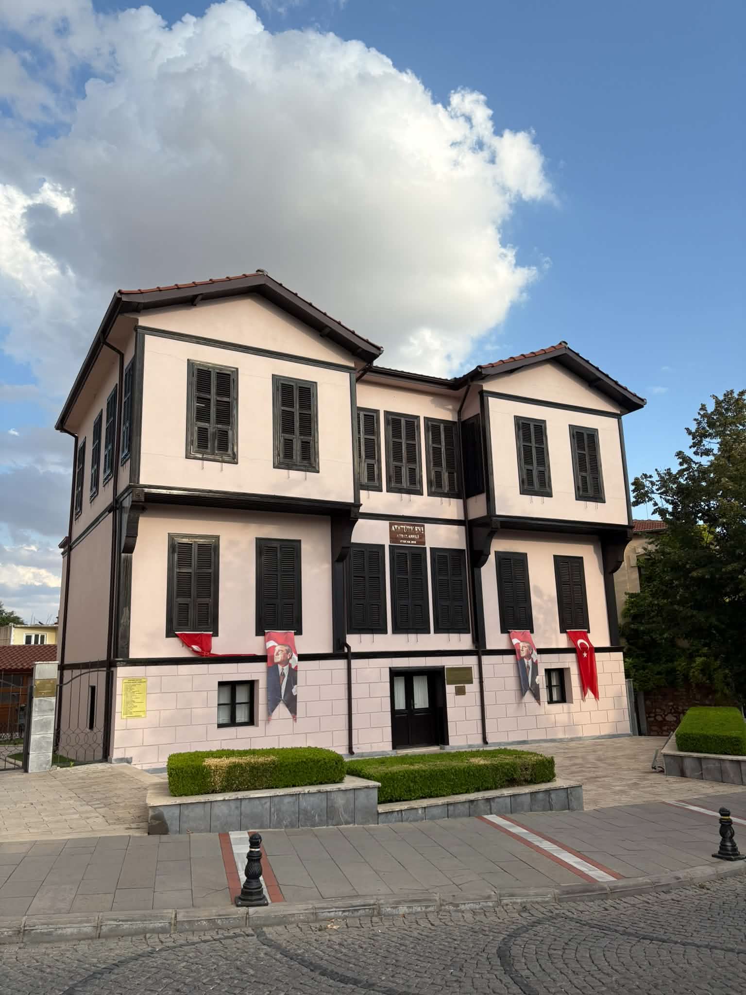 Aracımızı aşağılarda park edip yukarı doğru yürüyoruz.  Burası Yayla mahallesi. Geldiğimiz yerde Yayla Parkının bulunduğu meydan. Eski kentin çarşı meydanı. Selanik’teki Ulu Önder’imizin evinin, birebir aynısı, Atatürk Evi, burada. 2018 Ocak ayında açılan müze her gün 09:30 – 17:30 arası ziyarete açıkmış.