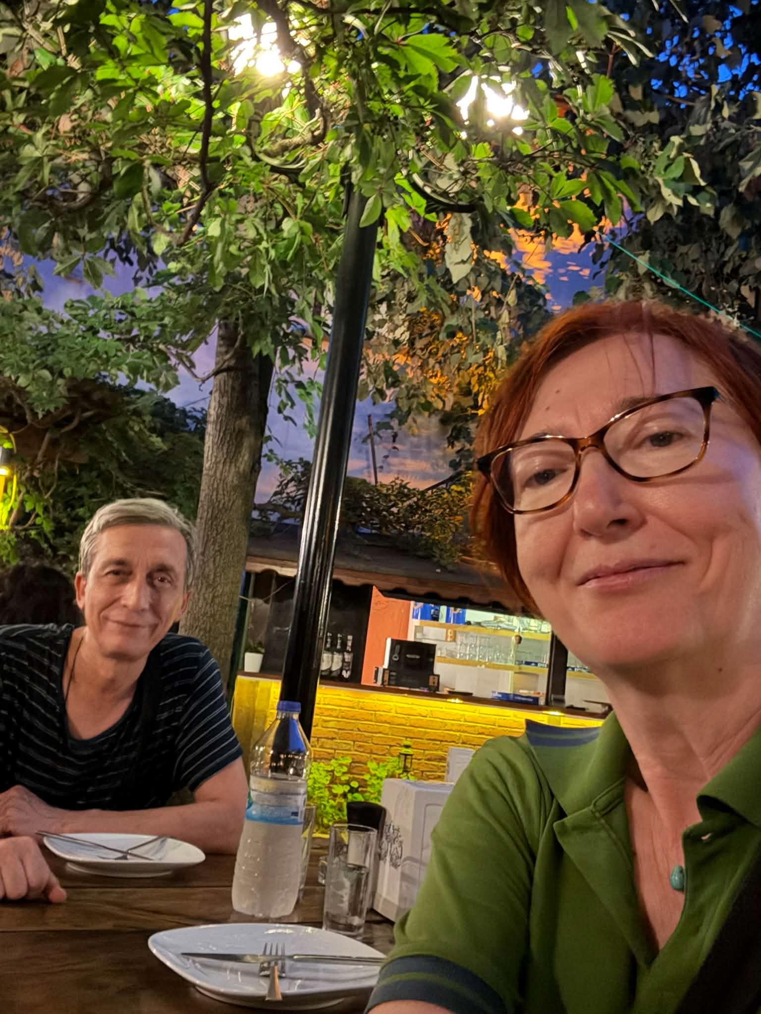 Şehre inip biraz dolaşıp geldiğimizde artık akşamın karanlığı daha bir çökmüş. Çay bahçesi bu güzel Pazar akşamının keyfini çıkarmak için gelen Kırklareliler tarafından dolmuş.