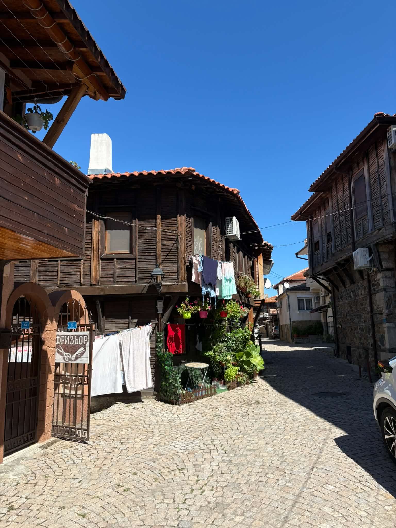 Şehir merkezinde kocaman çevrili bir park yerini seçiyoruz kalmak için. 24 saati 7 € ( Konum: 42.5000, 27.4756 ) Arabayı çekip hemen şehri keşfetmeye çıkıyoruz.